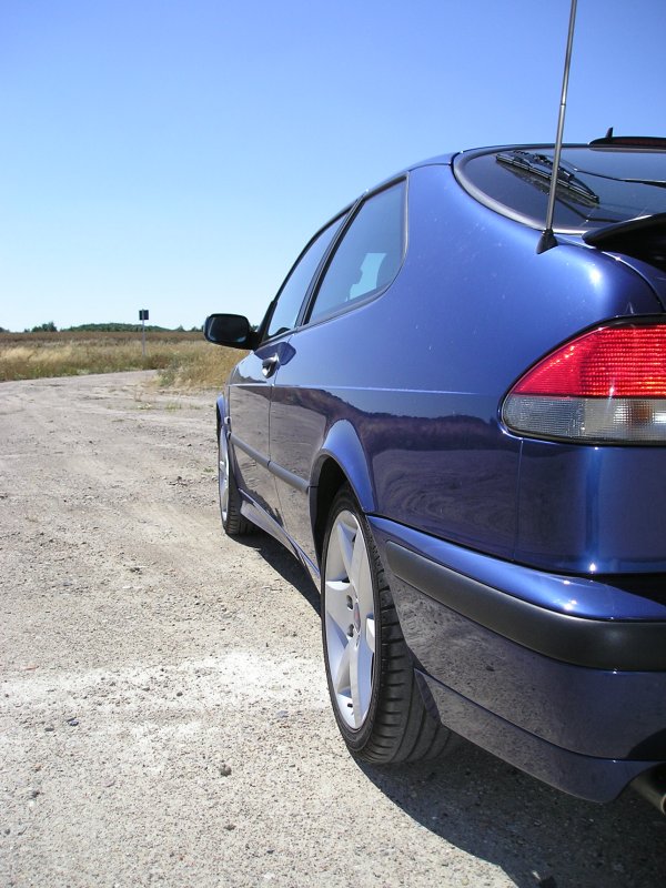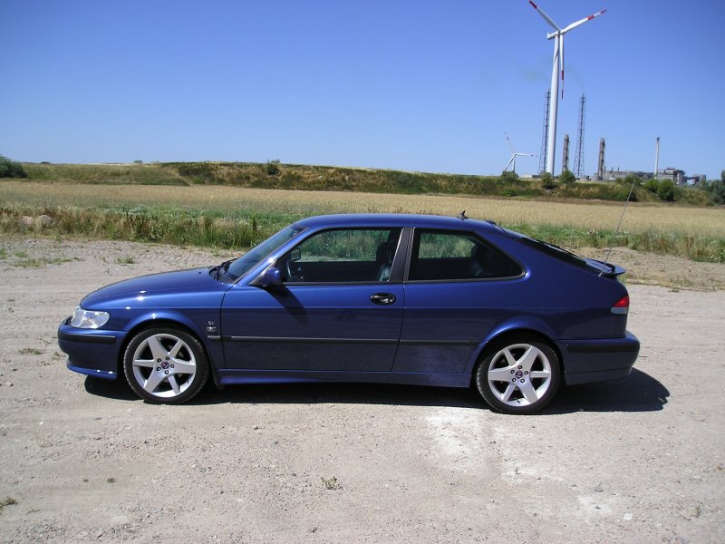 Also nichts wie hin zu einem der zahlreichen Wald-und-Wiesenhändler, in diesem Fall ging´s ab nach zum 400Km entfernten Halberstadt, die noch ´n gut erhaltenes Exemplar schwedischer Automobilkunst im Angebot hatten, und für 10 Riesen gehörte mir dann auch dieses SAAB 9-3I Turbo Coupe SE BJ2002 mit weniger als 80TKm auf´m Tacho. Austtatungsmässig lässt er kaum Wünsche übrig: Leder-Sitze, Sitzheizung auf den Vordersitzen, ´ne hervorragend funktionierende Klima-Automatik, ´n wohlklingendes Audio-CD-Sytem dank AS3, Tempomat und nicht zuletzt die angenehme Turbo-Motorisierung mit 185 PS trugen zur Kaufentscheidung bei.